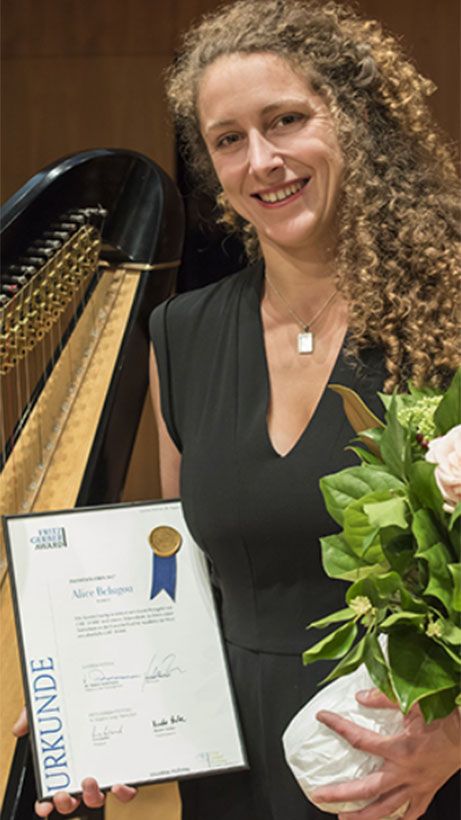 La harpiste Alice Belugou est née à Rouen en 1991. Elle a commencé ses études à la Sorbonne de Paris et au Pôle Supérieur de Paris Boulogne-Billancourt avant de poursuivre par un master en interprétation musicale à la Haute École de Musique de Lausanne, où elle a reçu le prix spécial pour concerts de maîtres en 2015. Elle a ensuite suivi la filière Master en pédagogie musicale et Minor en musique contemporaine à la Haute école de musique de Bâle. Alice Belugou a complété sa formation en participant aux master class de Georges Aperghis, Jennifer Walshe, Salvatore Sciarrino, Catherine Michel, Isabelle Moretti et Fabrice Pierre. Elle a accompagné l’Orchestre de Chambre de Paris et s’est également produite avec l’Ensemble Furiant à la Salle Pleyel de Paris, le Trio Synapse et l’Ensemble neuverBand ainsi qu’au festival «New Directions» de Piteå. En 2017, elle a remporté avec l’Ensemble georges le troisième prix du concours international Hugo de Feldkirch.