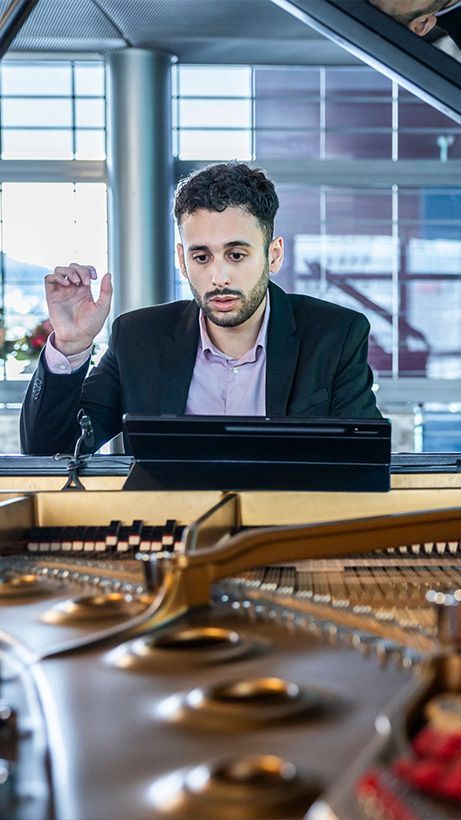 Né en 1999 à Bragança, le pianiste portugais Francisco Morais Fernandes commence ses études au conservatoire local et intègre ensuite l’Escola Superior de Música e Artes do Espetáculo de Porto auprès de Pedro Burmester. Il suit actuellement le master de performance musicale de la Haute école des arts de Berne dans la classe d’Antoine Françoise. Il a eu l’occasion de collaborer à des master class aux côtés, entre autres, de Piotr Anderszewski, Caspar Frantz, Heribert Koch ou Katia Veekmans. Morais Fernandes intervient comme soliste, dans le domaine de la musique de chambre, et comme musicien d’ensemble et d’orchestre. Ainsi, il a joué au sein de l’Orchestre symphonique de Berne et du Vertigo Ensemble. Il a participé en 2023 à l’académie d’été du Remix Ensemble, où il a collaboré avec des chefs comme Graziella Contratto ou Peter Rundel. Il a également participé au Festival Les Jardins Musicaux l’an dernier. En marge de son activité de pianiste, Francisco Morais Fernandes a suivi les cours de direction d’orchestre à la Vila Franca de Xira et il est à la tête de la Musikgesellschaft d’Eggiwil depuis 2023.