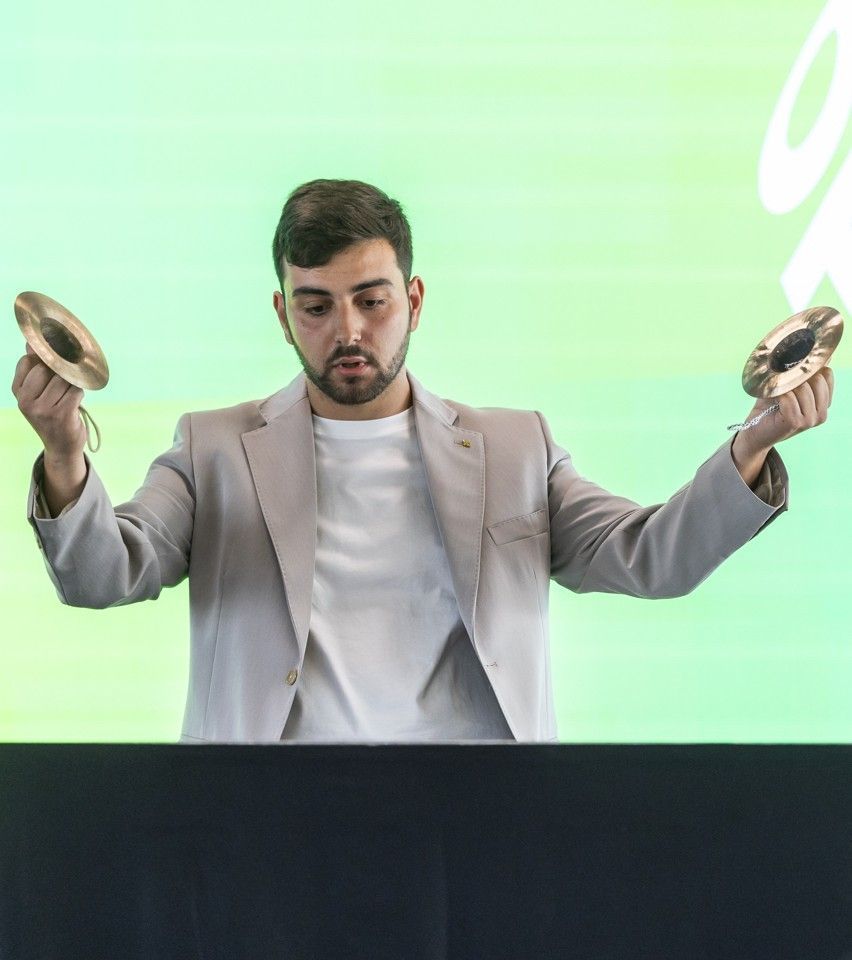Né en 1999, le percussionniste italien Antonio Gaggiano commence sa formation au Conservatoire «Umberto Giordano» de Foggia, où il obtient son diplôme avec mention. Grâce à une bourse Erasmus, il étudie deux ans à l’Académie royale des beaux-arts de Gand auprès de Wim Konink, Gert D’Haese et Filip Rathé. Il rejoint ensuite la classe de Christian Dierstein à la Haute école de musique de Bâle. Après un master en interprétation musicale (2024), il y poursuit actuellement un master en pédagogie musicale. Il enrichit sa formation lors de master class avec des percussionnistes tels que Marinus Komst, Filippo Lattanzi, David Friedman ou Nanae Mimura, ainsi qu’avec des ensembles comme Tetraktis Percussioni ou Blow Up Percussion. Récompensé par plusieurs distinctions, notamment au World Percussion Movement Vibraphone Competition (2021) et au concours de composition «Città di Albenga», il est membre du Chigiana Percussion Ensemble depuis 2021. Il a également joué avec l’Orchestre symphonique de Bâle, le Collegium Musicum Basel et l’Orchestre du Teatro di San Carlo de Naples, et s’est produit aux festivals impuls (Graz), mixtur (Barcelone) et au Musikfestival Bern.