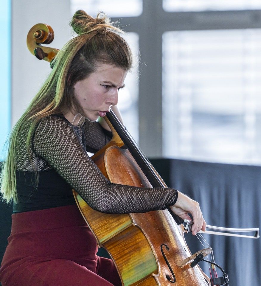 La violoncelliste et compositrice française Hortense Airault, née en 1999 à Paris, grandit sur l’île de Mayotte. Elle étudie avec Thomas Duran au Conservatoire à rayonnement régional de Paris, puis à la Haute école de musique de Genève, où elle obtient un master en «Concert Performance» avec spécialisation «Composer-Performer» auprès d’Ophélie Gaillard et de Joshua Hyde. Elle poursuit actuellement un master en «Creative Practice» avec spécialisation Composition à la Haute école d’art de Berne. Son travail s’oriente particulièrement vers l’improvisation, qu’elle explore notamment au sein du Duo Imminent avec la chanteuse et saxophoniste Ana Parejo Belando, ou comme membre du Free Spirit Ensemble. Un autre axe important de son travail est le quatuor à cordes: avec le Momo Quartet, avec lequel elle a remporté le troisième prix du Concours suisse de musique de chambre Orpheus en 2024 et le premier prix du concours Osez! en 2025, elle suit à Genève le CAS auprès du Belcea Quartet. Elle a également reçu le Prix Tremplin Leenards et le Prix Contrechamps (tous deux en 2024).
