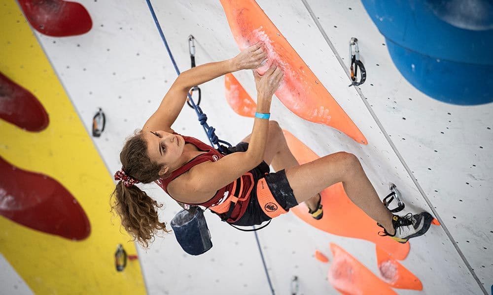 Malgré l’annulation des compétitions, Anne-Sophie Koller s’engage pleinement dans son domaine, aménage une salle d’escalade et part à la découverte du paysage rocheux suisse.