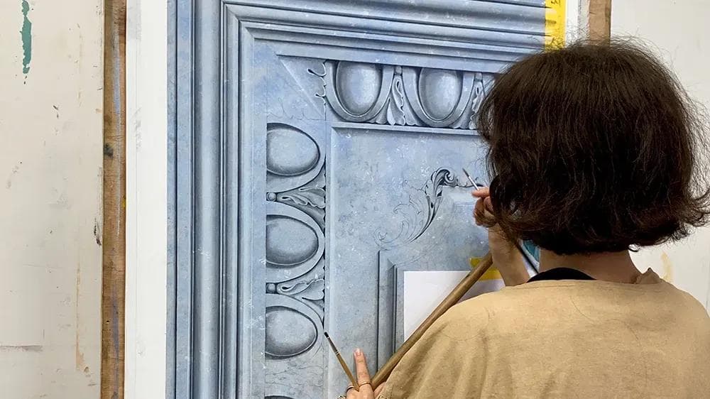 La «libération» survint lorsque je réussis l’examen d’entrée du cours préparatoire de l’École de design de Bâle. Pendant deux ans, je pus enfin m’adonner à ce pour quoi j’étais faite! Pauline Calame Artiste, peintre décoratrice Après ce cursus préparatoire, je passais une année de plus à peindre dans mon petit atelier chez moi, tout en suivant avec beaucoup de joie les cours de peinture d’Urs Glaser et Anja Ganster. Je compris que je voulais apprendre les vieilles techniques, peindre à l’huile et m’approprier un certain savoir-faire artistique. Ce n’est pas dans une école d’art «classique», dont les cours sont aujourd’hui si conceptuels, que j’allais trouver cela.